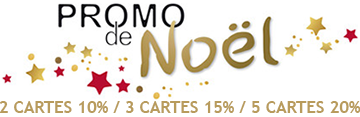 PROMOTION : UNE RÉDUCTION EST CALCULÉE AUTOMATIQUEMENT SUR LE PRIX TOTAL DES PRODUITS DE VOTRE PANIER EN FONCTION DU NOMBRE DE PRODUITS ACHETÉS : 10% POUR 2, 15% POUR 3 ET 20% À PARTIR DE 5 CARTES ACHETÉES.